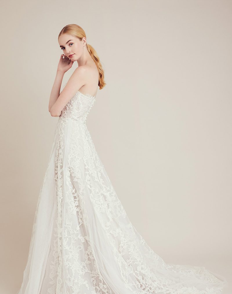 - Back zipper; sheer tulle-lined bodice, fully lined skirt